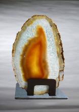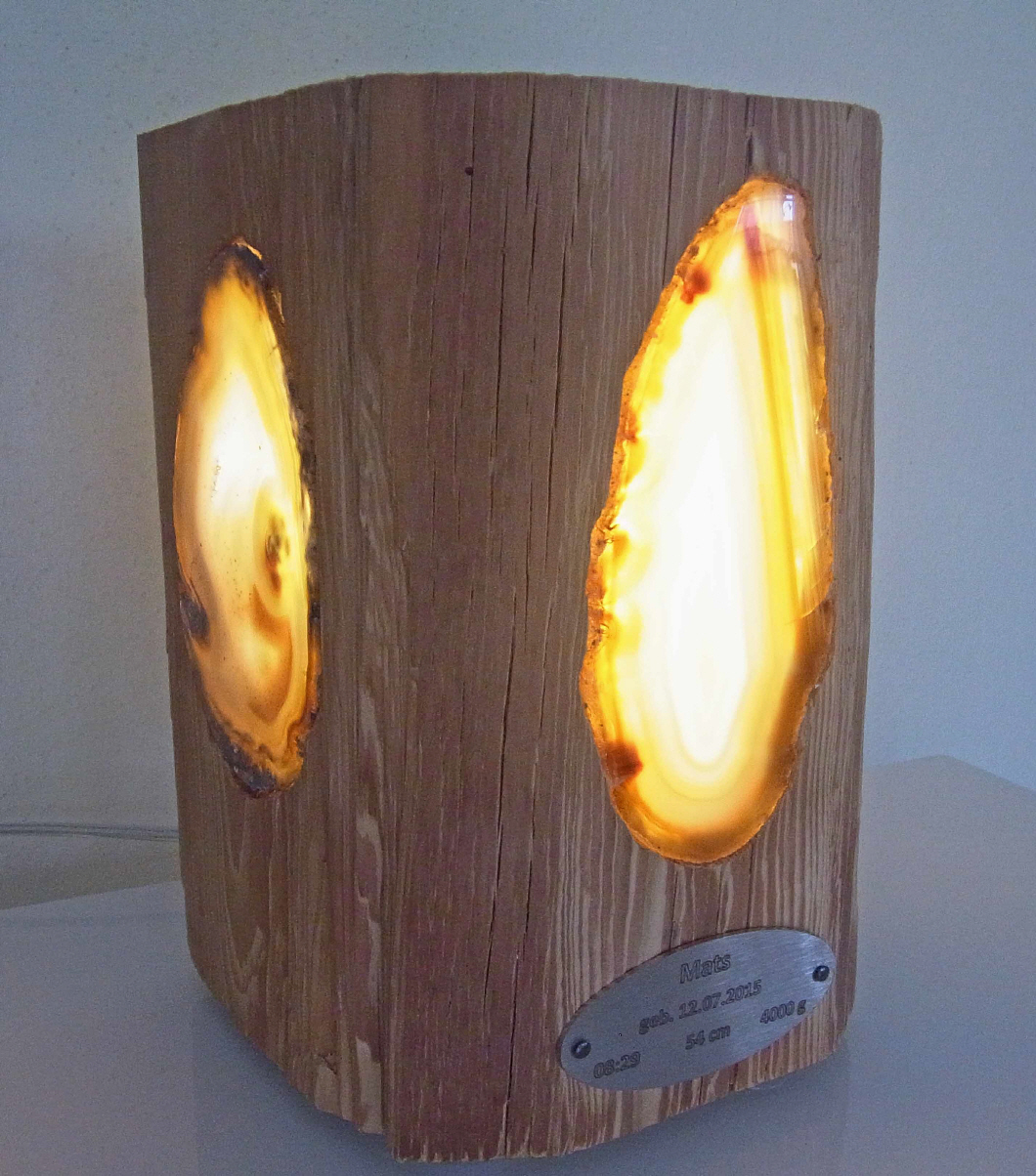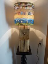 Stehlampe aus antiker Holzsäule mit modernem Schirm